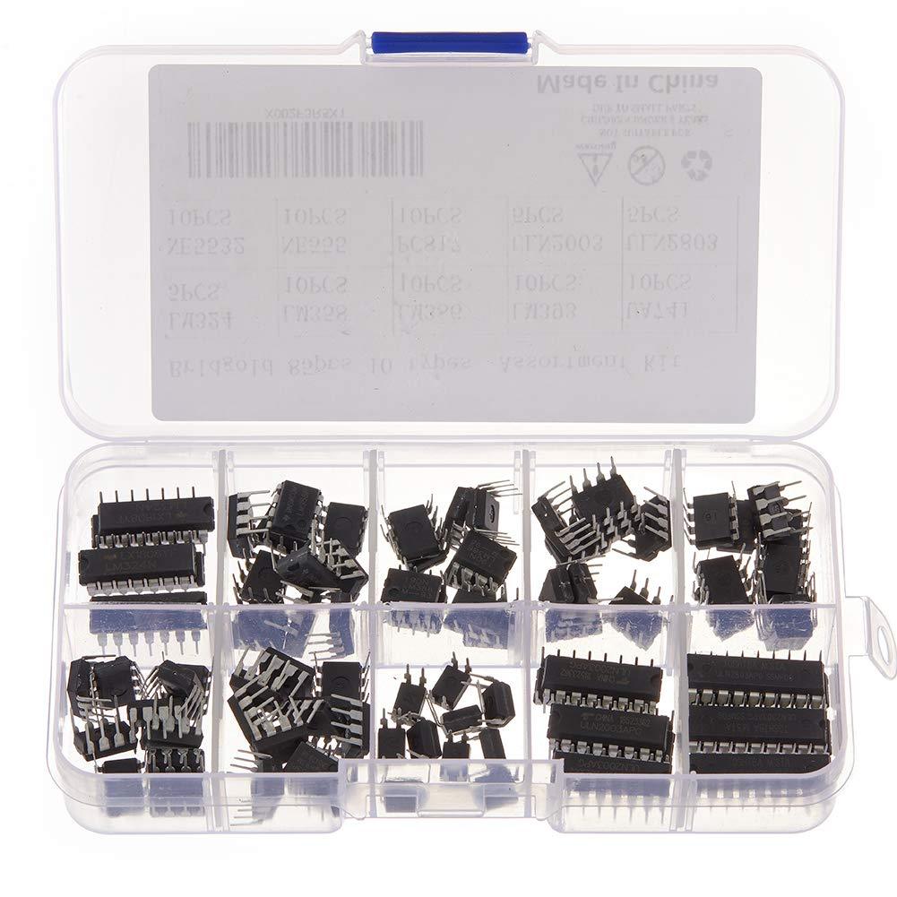 Bridgold 85 pcs 10 Types Integrated Circuit chip Assortment Kit,opamp,Single Precision Timer,pwm,Including:LM324 LM358 LM386 LM393 UA741 NE5532 NE555 PC817 ULN2003 ULN2803.